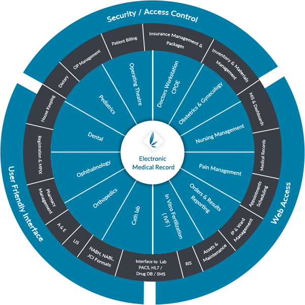 Our flagship software product, Kranium - Integrated Health Information System (HIS), is a web based, 3-tier, comprehensive, modular and integrated HIS that automates the functionalities of healthcare establishments. With over 40 modules covering the continuum of healthcare. Kranium is built with a firm foundation based on extensive interaction and key inputs from the hospital users. Kranium is entirely based on international norms & standards and relies on internationally accepted / used guidelines and practices. Kranium is HL7 complaint. Current and emerging standards in IT & Telecom and Healthcare Informatics play a fundamental and significant role in the roadmap of the product.
